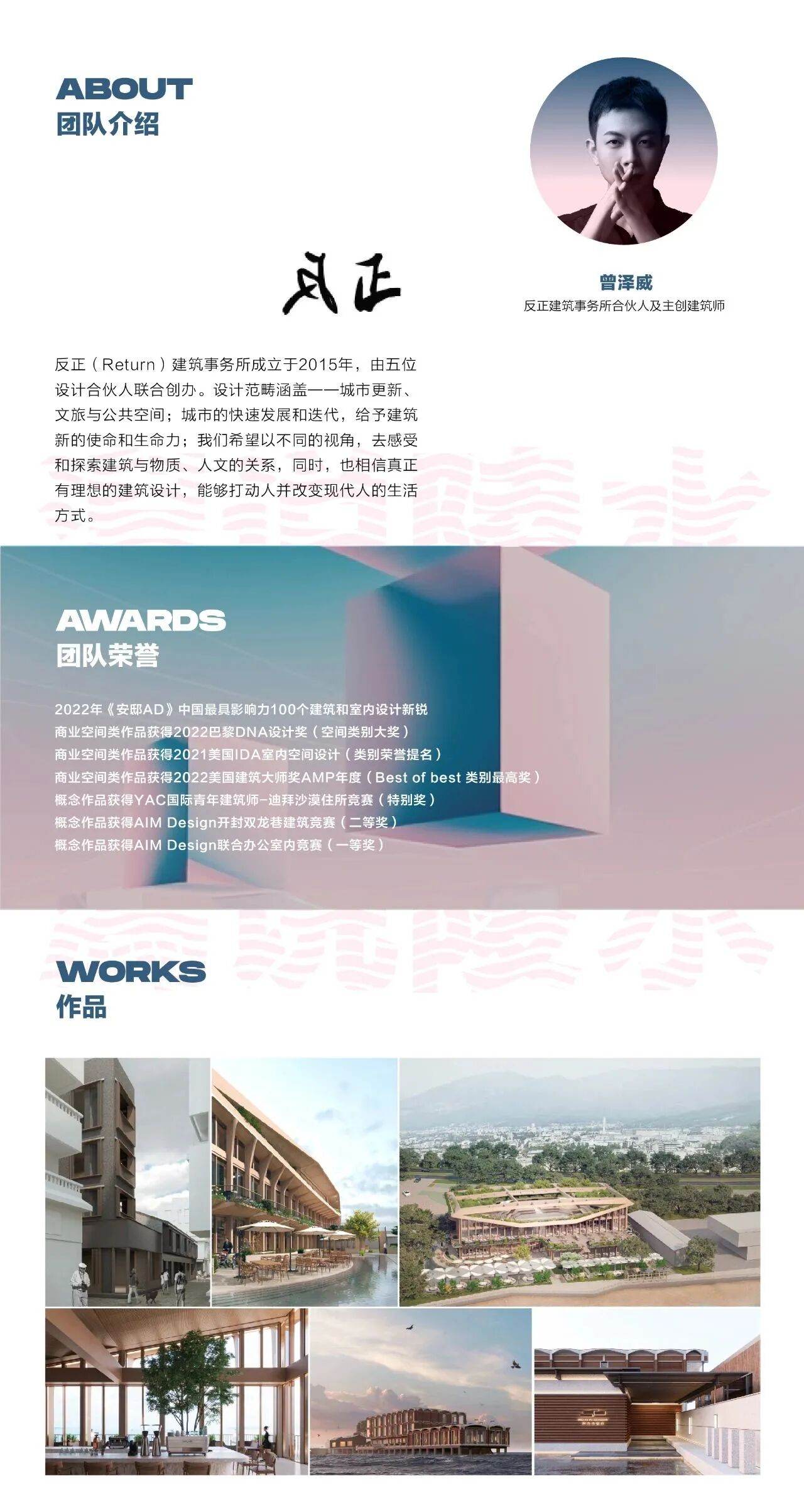 反正(Return)建筑事务所成立于2015年,由五位设计合伙人联合创办。