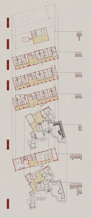 集种业态(民宿、美术馆、咖啡、酒吧、手工坊、小剧场、茶馆、餐饮、文创等)功能于空间,联合公共场地形成艺术集市(空地公共空间定期设置艺术创意品售卖摊位),再造清明上河图繁华市井。