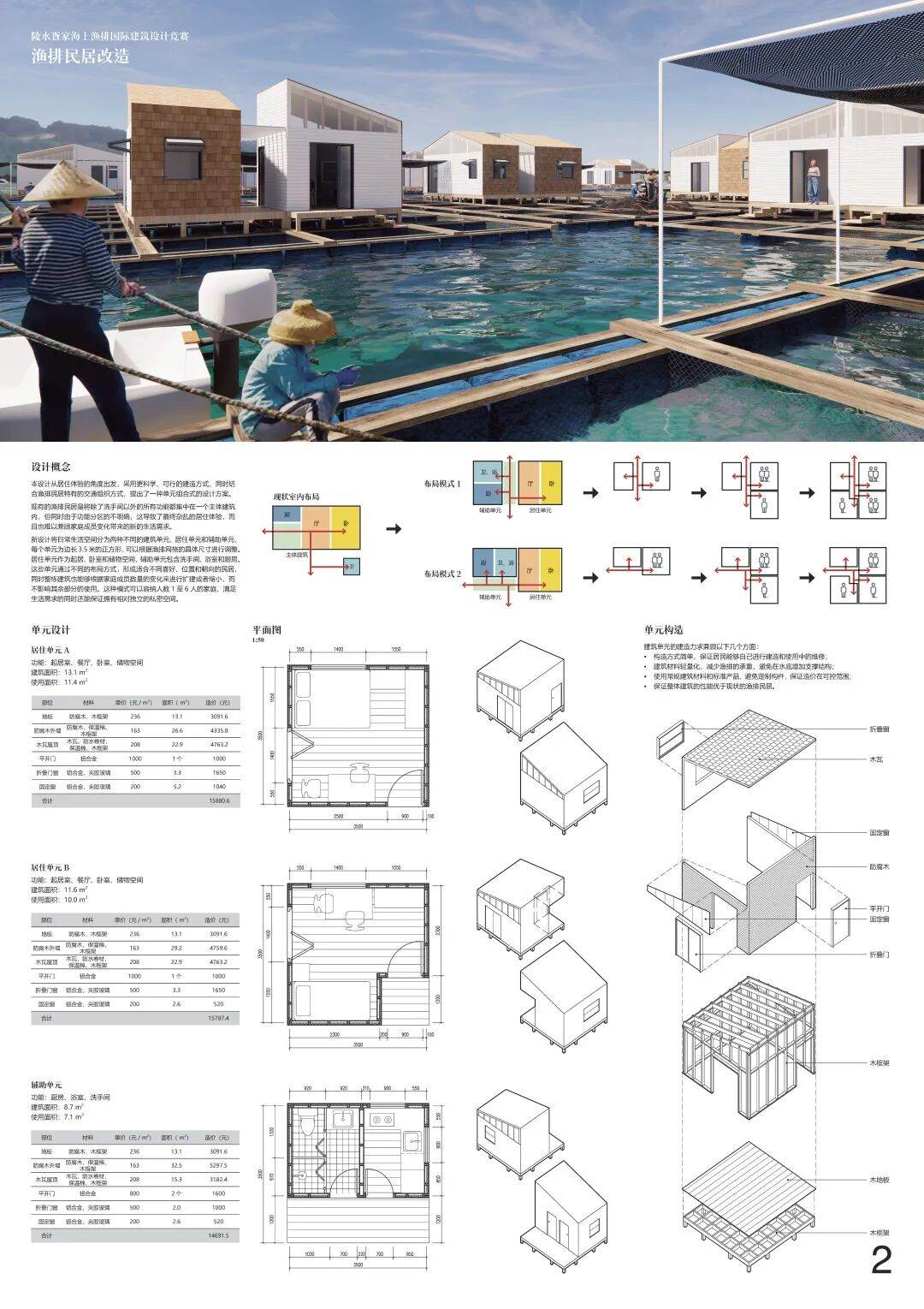 本设计从居住体验的角度出发,采用更科学、可行的建造方式,同时结合渔排民居特有的交通组织方式,提出了一种单元组合式的设计方案。