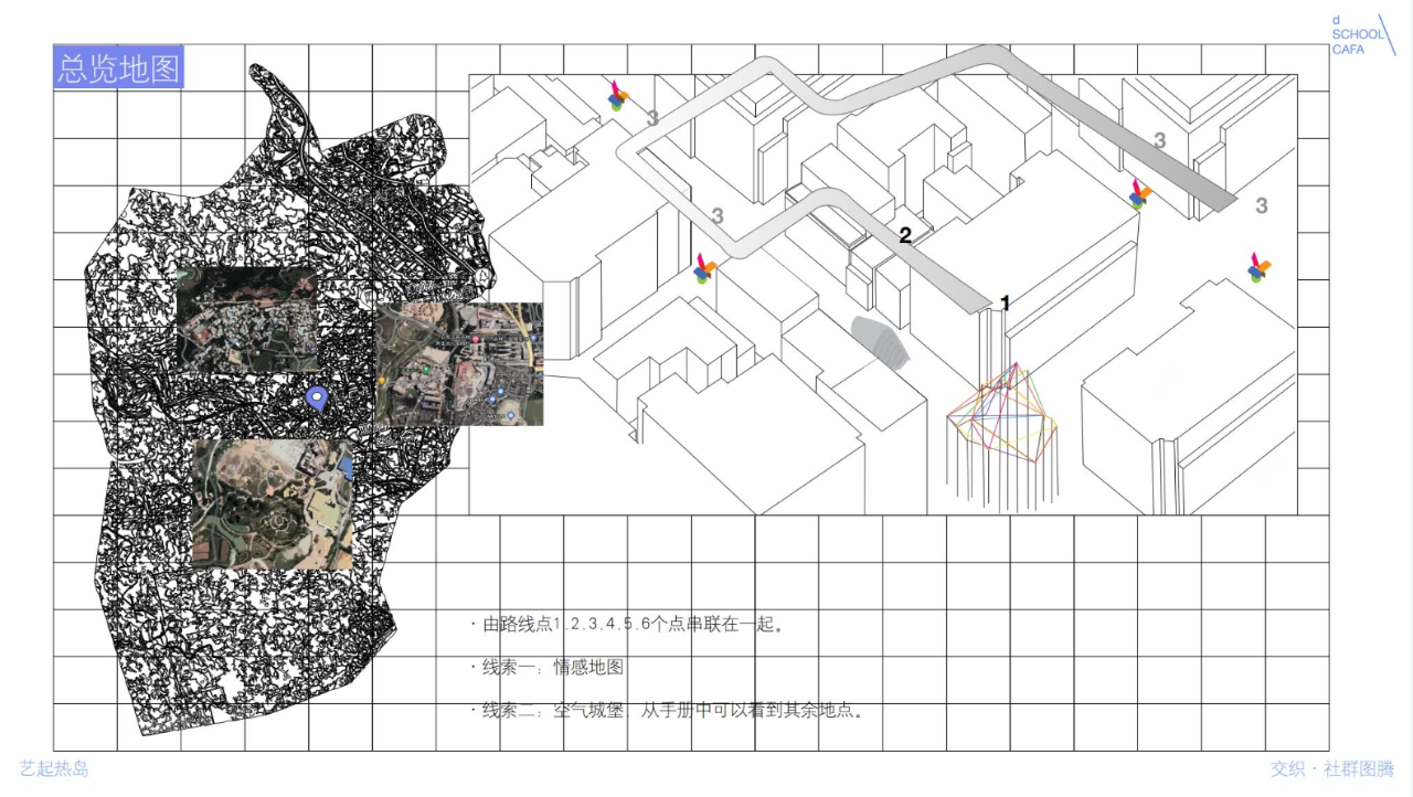 船形屋幻想位于地图的不远处,这是一个突兀的存在,在城市中贸然出现的洁白庞大的空气城堡连接着街道的两端,即是对村落本身固有环境的突破,也是一种乌托邦式的幻想。传统、回忆与人与人之间的链接筑起了这座“船形屋”。