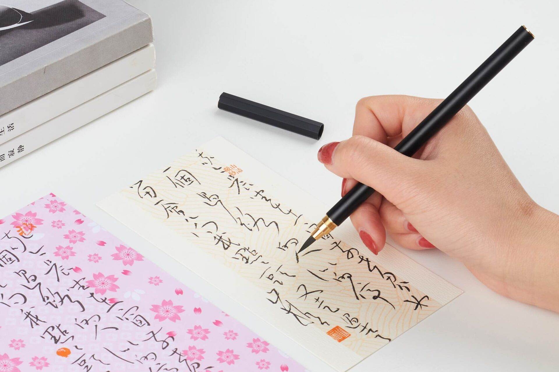 小管整体外观源自宋代镶管式毛笔,八棱形笔帽能有效防止毛笔掉落造成损坏。笔头以聚酯纤维替代传统动物毛,更加环保。经传统制笔工艺指导生产,使书写性非常接近传统毛笔。内胆配有自动供墨系统,便于携带与使用,笔头和墨囊根据需要轻松更换,一体化设计使得笔管可以搭配不同造型、风格,提供丰富的使用体验。